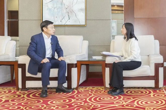 圖為毛新平院士接受《中國(guó)冶金報(bào)》記者專訪(特約通訊員 藍(lán)義高 攝影)